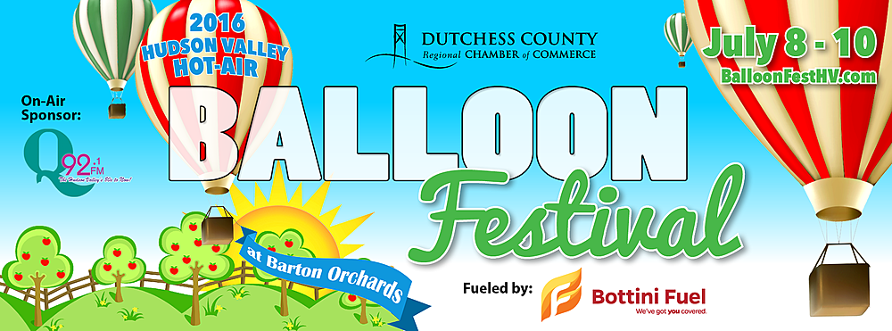 The Dutchess County Regional Chamber of Commerce will host the 26th annual Hudson Valley Hot-Air Balloon Festival on July 8-10, 2016. We are expecting another great weekend with about 100 balloon launches between Friday and Sunday.