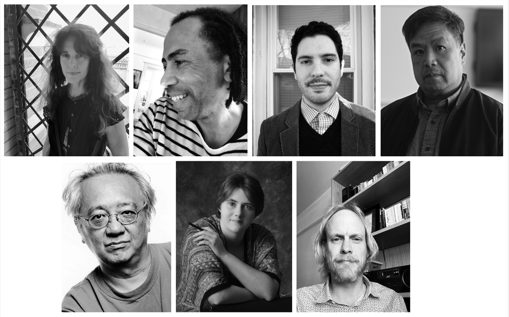 Authors are pictured above as follows, left to right: Karla Kelsey, D.S. Marriott, Jose-Luis Moctezuma, Truong Tran, Marcus Stewart, Kelly Weber & John Yau, all courtesy Omnidawn (not pictured: Damon Potter).