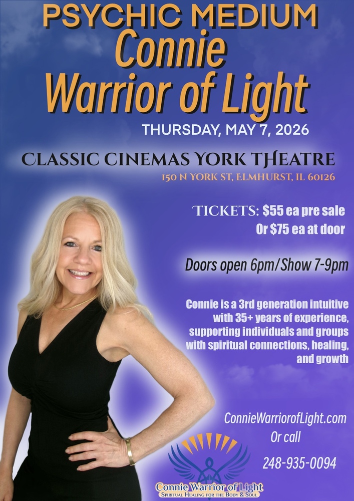 Connie Warrior of Light Live Open Forum Mediumship Event at Classic Cinemas York Theatre! May 7, 2026