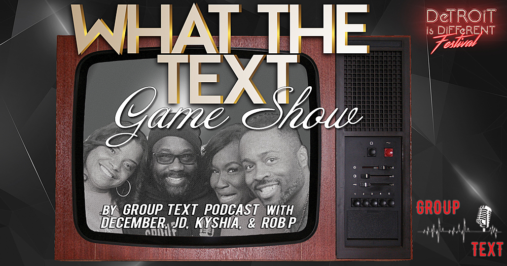 Join Group Text for the 'What the Text Game Show. Presented and judged by Group Text the podcast featuring December, JD, Kyshia, and Rob P.