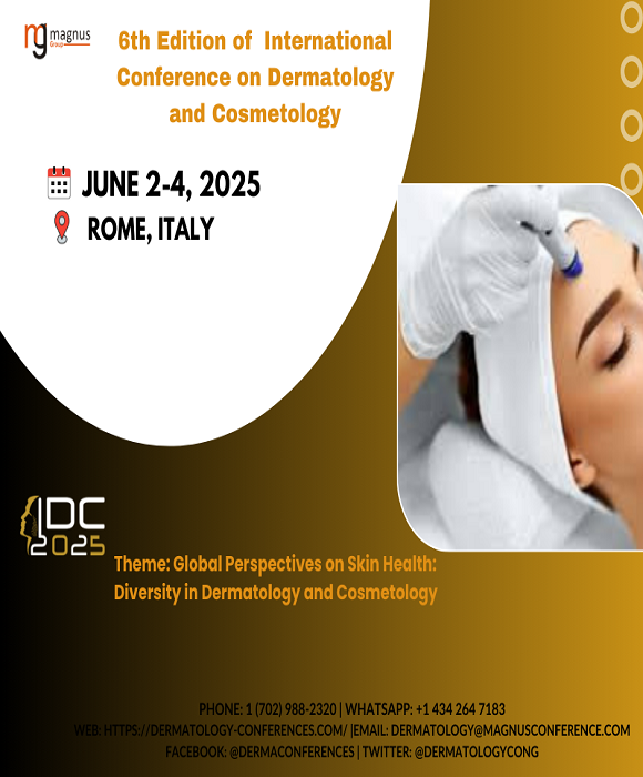 Magnus Group proudly announces the 6th Edition of the International Conference on Dermatology and Cosmetology (IDC 2025), scheduled from June 2-4, 2025, in the historic city of Rome, Italy. This hybrid event offers the convenience of both onsite and virtual participation, catering to a global audience.