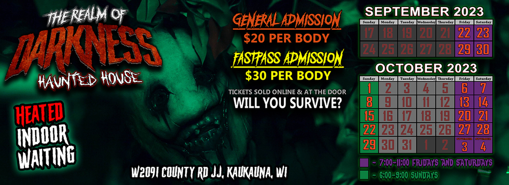 The Realm of Darkness Haunted House is an unparalleled thrill-seeking adventure that will leave you trembling with terror. Prepare yourself to embark on a relentless journey through an interactive maze of heart-pounding horror, where your worst fears come to life. As Wisconsin's most intense haunted house, our team of spine-chilling actors and cutting-edge special effects are waiting to plunge you into a spine-tingling nightmare.
