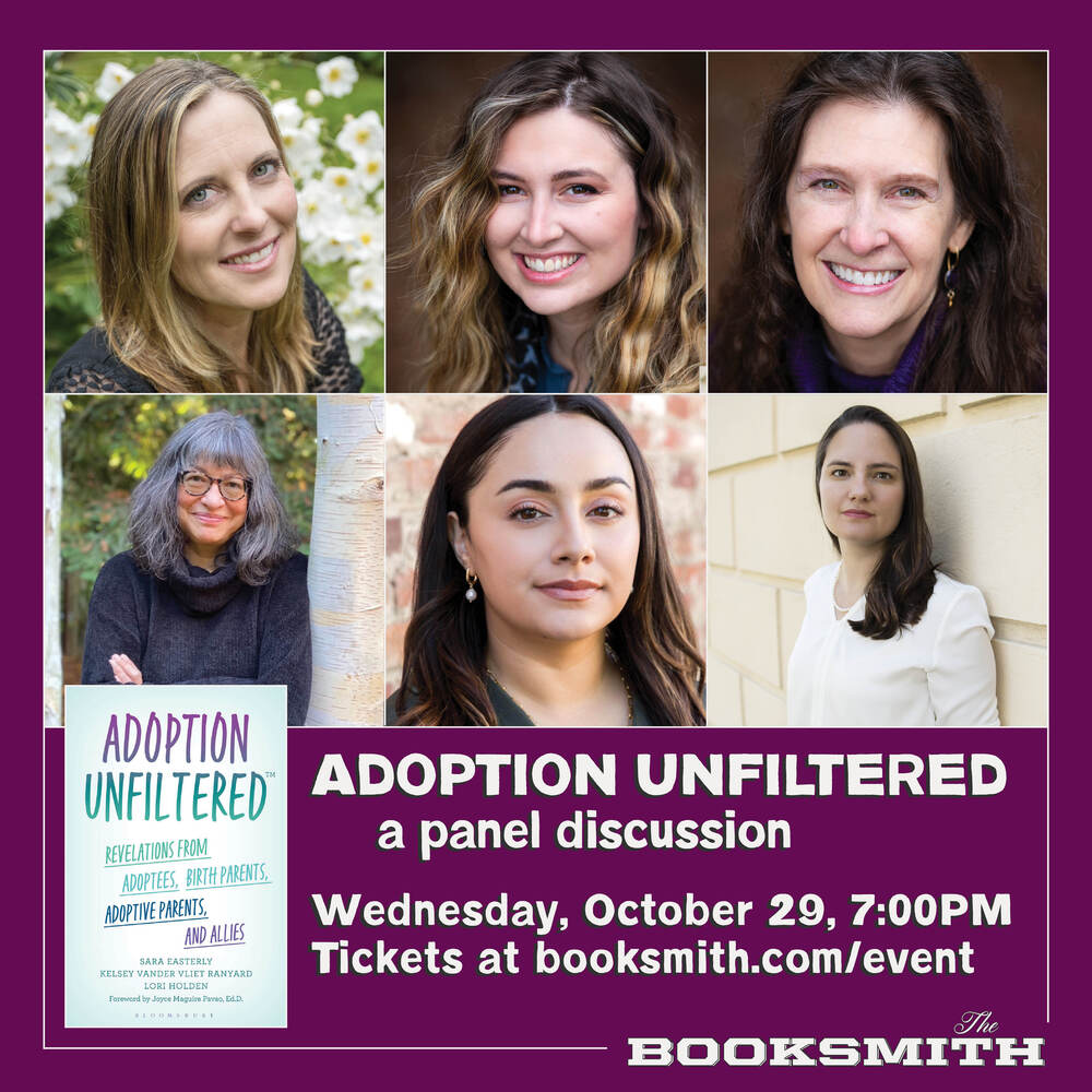 The Booksmith is thrilled to host the paperback release of Adoption Unfiltered, joined by all three co-authors and select panelists. RSVP is not required, but is greatly appreciated! Seats are limited and can be reserved with the purchase of a book.