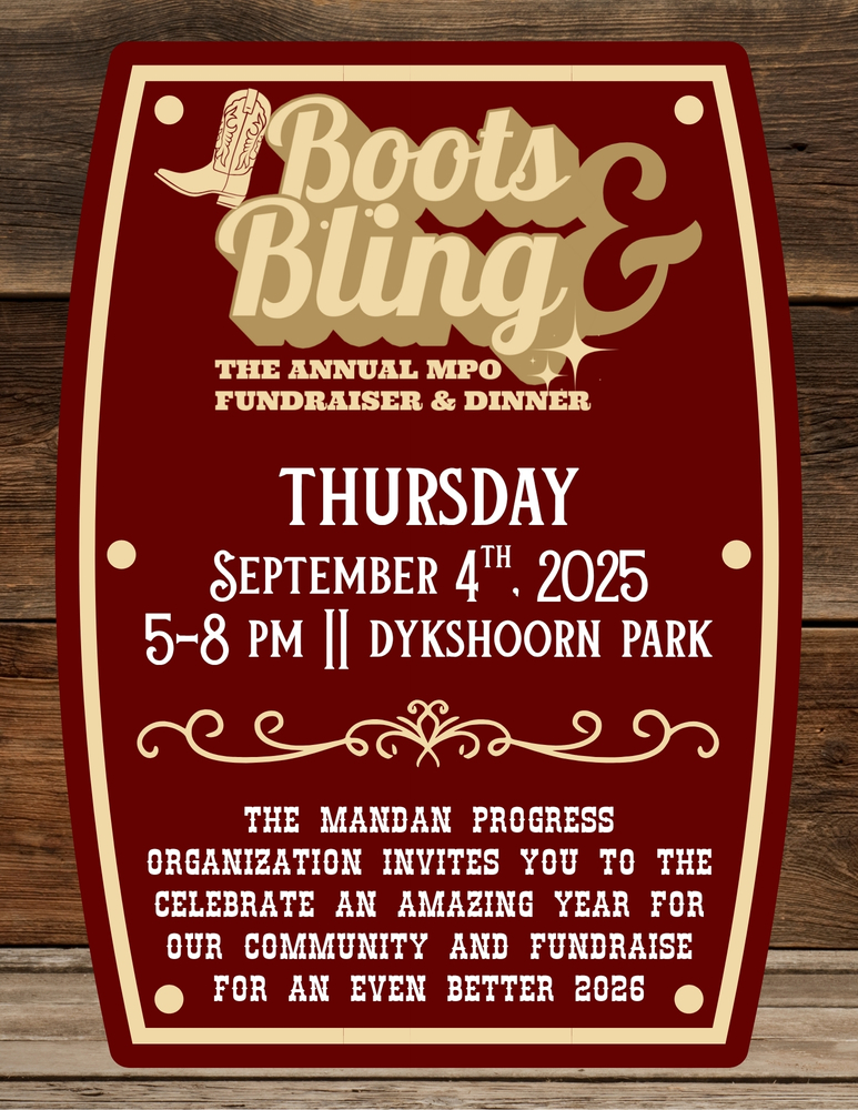 This is an event you won't want to miss. Tickets are $50 per person and include a complimentary meal and drink, or consider becoming a sponsor to gain extra tickets, notoriety and to leave a lasting impression! Table sponsorships can be viewed here: https://www.visitmandan.com/boots-and-bling