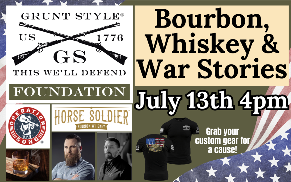 Experience the ultimate blend of Whiskey, Bourbon, War Stories, and Cigars at our event! Enjoy tastings from local and national distilleries, hand-rolled cigars, and live music by Operation Song. Join our Fireside chat with Tim Jensen, Co-owner of Grunt Style, along with Dan Blakeley and Tom Amenta, as they share wartime tales. The Fireside chat tapping will be broadcasted nationwide through Grunt Style and Grunt Style Foundation social media, and our American Grit platform, so be sure to buy your VIP ticket today! Proceeds support the Grunt Style Foundation.