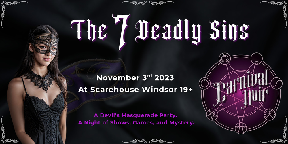 Windsor's largest haunted house opens its creaking doors for Carnival Noir: The 7 Deadly Sins. A spectacle of shows, thrilling games, and enigmatic treats await within. Adorn your most mysterious attire and delve deep into tales of the 7 sins. And heed this: secure your ticket early, and you could win a grand arrival in a genuine hearse. An evening of wonder beckons!