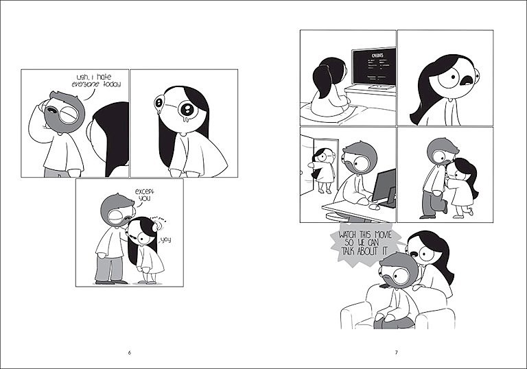 Catana Chetwynd is a self-taught traditional artist and the enthusiastic author of Catana Comics. She grew up in Saratoga Springs, New York, where she spent her time creating art and pursuing an education in psychology until accidentally stumbling into the world of comics. Not only is her fiancé, John, the daily inspiration for her drawings, but he was also the one who suggested a comic series about their relationship in the first place. Thanks to his idea and his inspiring daily antics, Catana was able to pursue her childhood dream of being a cartoonist. She currently lives on the East Coast with John and their tiny, angry dog, Murph.