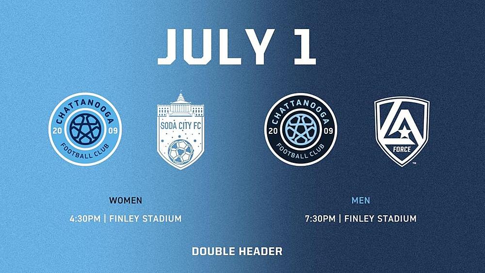 The Chattanooga FC Women will take the field at 4:30 against Soda City FC, and the Chattanooga FC Men will follow that up with a 7:30 kickoff against Los Angeles Force. All tickets include entry into both matches. Finley Stadium's NO RE-ENTRY POLICY is in effect. You will not be able to leave the stadium in-between matches if you would like to attend both contests.