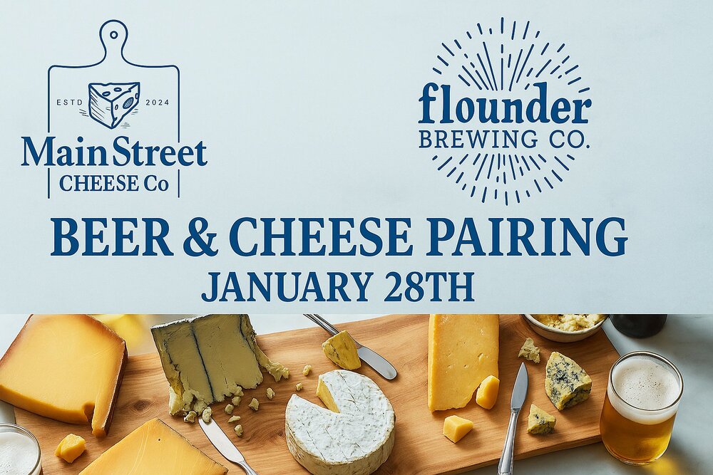 This guided tasting brings together Main Street Cheese owner and cheesemonger, Jordan Nash, with Flounder himself for an unforgettable exploration of local flavor. Together, they’ll lead you through a curated flight of Flounder’s handcrafted beers, each thoughtfully paired with small-batch cheeses selected from Jordan’s Downtown Somerville shop, Main Street Cheese. Jordan will share insight into the artistry behind cheesemaking, from aging and milk styles to pairing principles, while Flounder will dive into the brewing process and flavor notes that make each beer shine alongside the cheese.