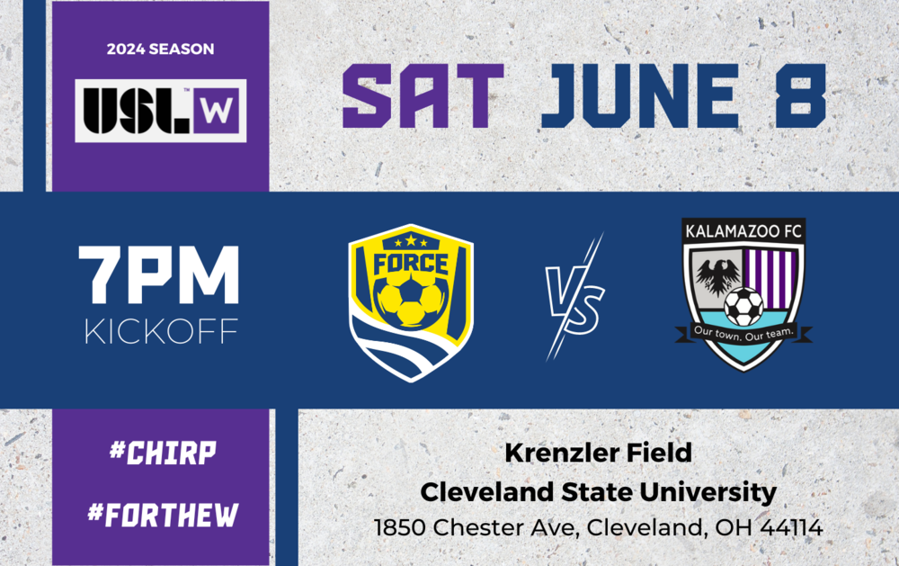 USL W League Home Opener - Cleveland Force SC vs Kalamazoo FC - June 8, 2024 @ 7pm