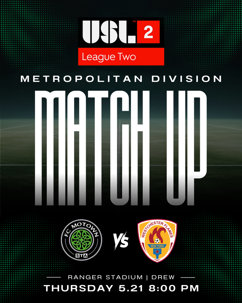 Come join us for an exciting night of soccer as FC Motown STA takes on Westchester Flames at Ranger Stadium (Drew University) on 5/21/26 at 8:00 PM