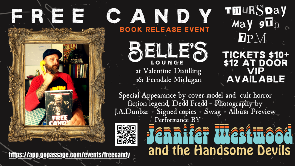 Don't miss this opportunity to celebrate with music from the Electrified Americana group Jennifer Westwood and the Handsome Devils featuring Jennifer, Dylan, Chuck Bartels, Dave Below and Mark Lotus...Including a listening preview of the upcoming album "Mad Man's World". Cover model and cult celebrity zombie "Dedd Fredd" will be available for photo ops, plus art from photographer J.A. Dunbar and more in the beautiful Belle's Lounge by Valentine Distilling at 161 Vester Ave in Ferndale, MI