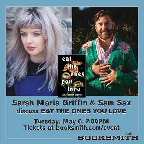 The Booksmith is so excited to be hosting Sarah Maria Griffin at The Booksmith for the Eat the Ones You Love on May 6th at 7pm. She'll be joined in conversation by Sam Sax. Please join us! RSVP is not required, but appreciated. Seats are limited and can be guaranteed with the purchase of a book.