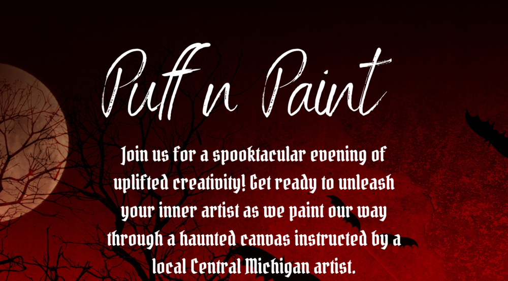 Join us for a spooktacular evening of uplifted creativity! Get ready to unleash your inner artist as we paint our way through a haunted canvas instructed by a local Central Michigan artist.