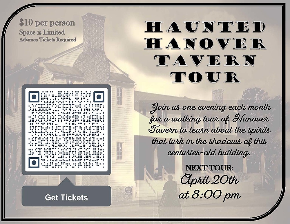 Join us for a tour of Historic Hanover Tavern as we share tales of paranormal happenings at the Tavern, both new and old.