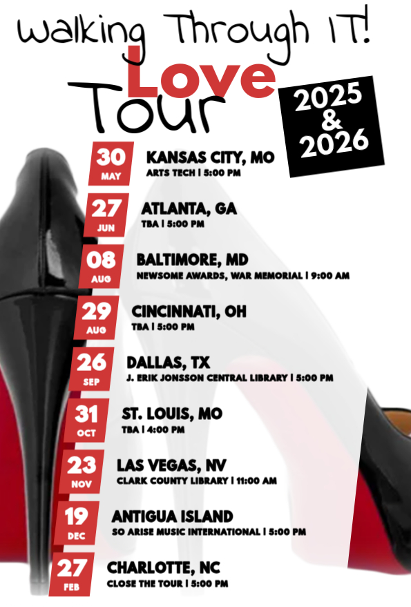 Walking Through IT! Love Tour has a focus on healing, resilience, and transformative growth. We aim to create a safe and loving space for anyone going through life’s struggles with the intentions to inspire, uplift, and encourage each participant. We plan to love on you in the areas of each authors, entertainers, and keynote speakers experience, expertise, and life story!
