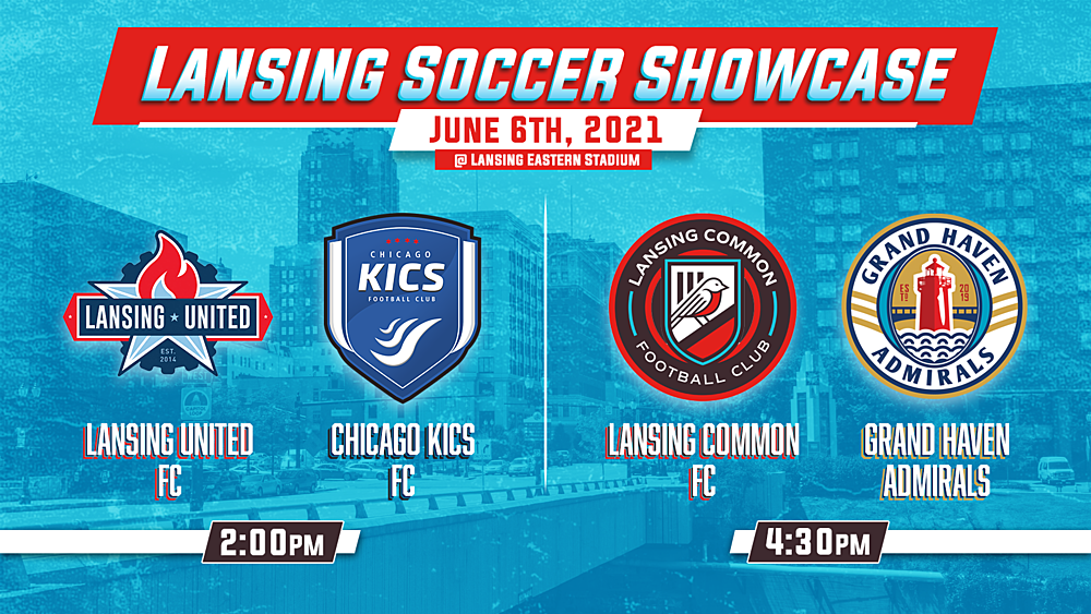 Lansing’s two highest level women’s and men’s soccer teams will host a double-header on June 6 at Eastern Stadium. Lansing United will kick off at 2 pm against Chicago KICS FC, and Lansing Common FC will follow with a matchup against the Grand Haven Admirals.