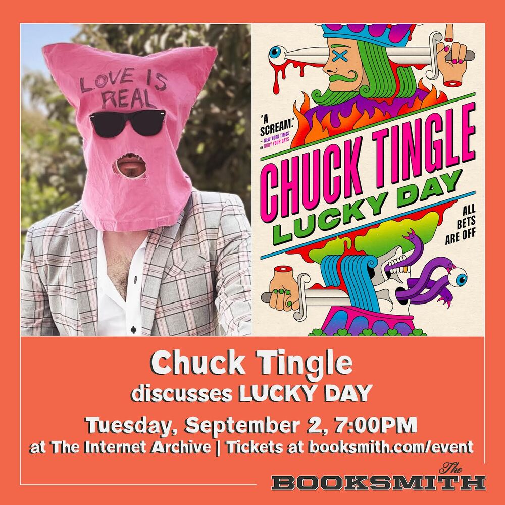 This Tuesday, September 2nd, The Booksmith welcomes Chuck Tingle back to San Francisco for Lucky Day at The Internet Archive! We don't have to tell you how much fun this is going to be, so hurry up and grab a ticket for yourself and a friend (or three.)