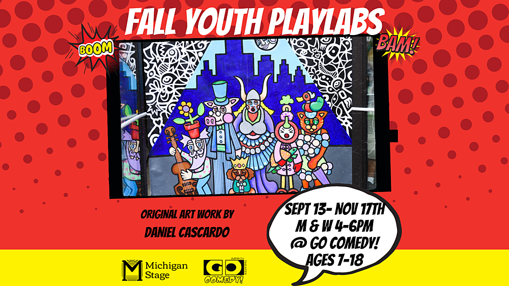 Coming this Fall 2021, Michigan Stage will offer Youth Playlab Programs at Go Comedy! for local youth ages 7-18. These semester length after-school programs will be focused on building performance skills through ensemble-based work, improvisation, and individualized coaching. Playlabs culminate with a student created original musical to be performed on the final day of the program.