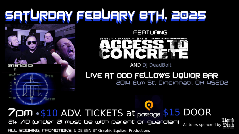 Get ready to experience the ultimate live music extravaganza at Oddfellows Liquor Bar in Cincinnati, OH, USA. Graphic Equalizer Productions will be taking the stage to deliver an unforgettable evening of music and entertainment. Doors open at 7 pm for this 21+ event, with under 21s welcome accompanied by a parent or guardian.