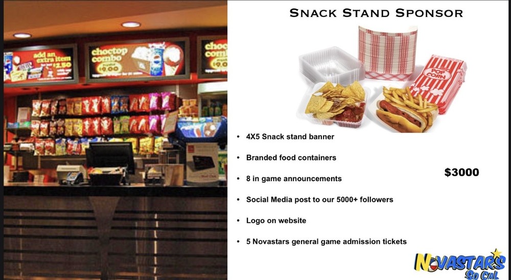 Experience the Ultimate Snack Stand Sponsorship Package at Novastars Games