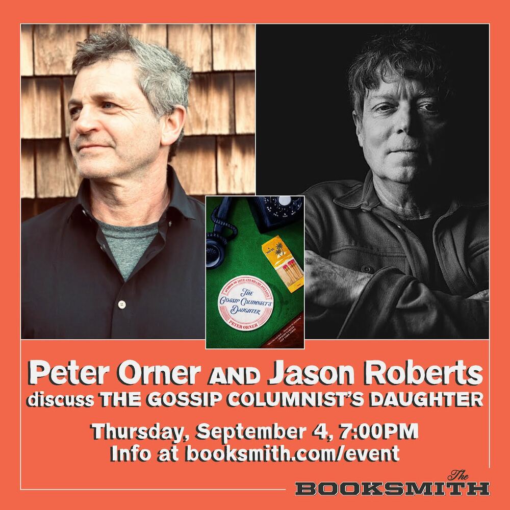 Join us on Thursday, September 4th at 7pm as we welcome Peter Orner back to the store for The Gossip Columnist's Daughter. He will be joined in conversation by Jason Roberts. RSVP is appreciated, but not required. Seating is limited, but you may reserve a seat with the purchase of a book.