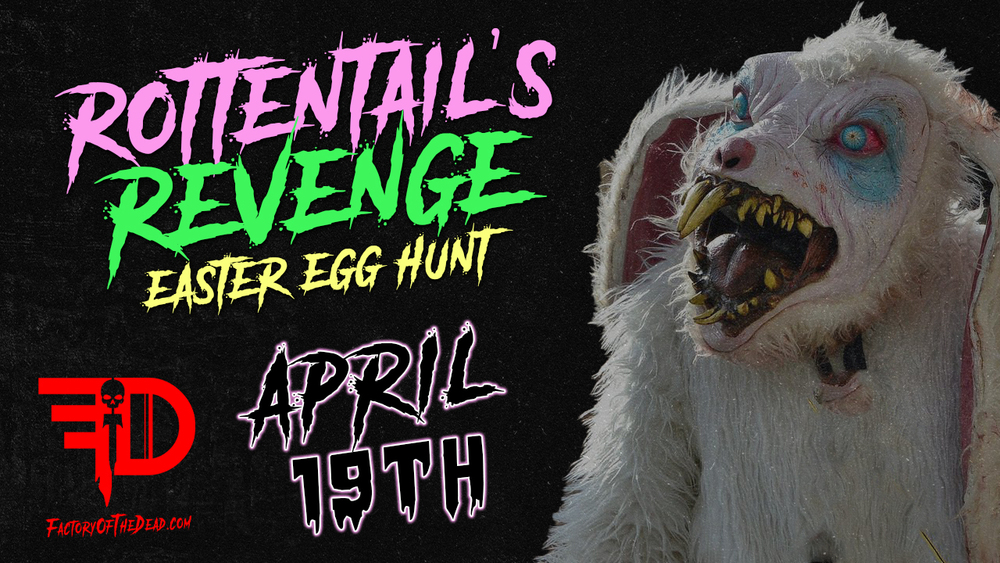 A Creepy Easter Egg Hunt at Factory of the Dead. Your group will collect eggs along the way and can redeem them for prizes afterwards. Experience a Creepy Easter Themed Haunted House Special Event. For one night only, navigate through the Haunt and experience the Peter Rotten Tail. Easter Eggs as you navigate the attraction to use at the Gift Shop for Escape Room, GellyBall and upgrades. Can you survive Peter Rotten Tail and escape with all of your eggs to redeem them for great prizes?