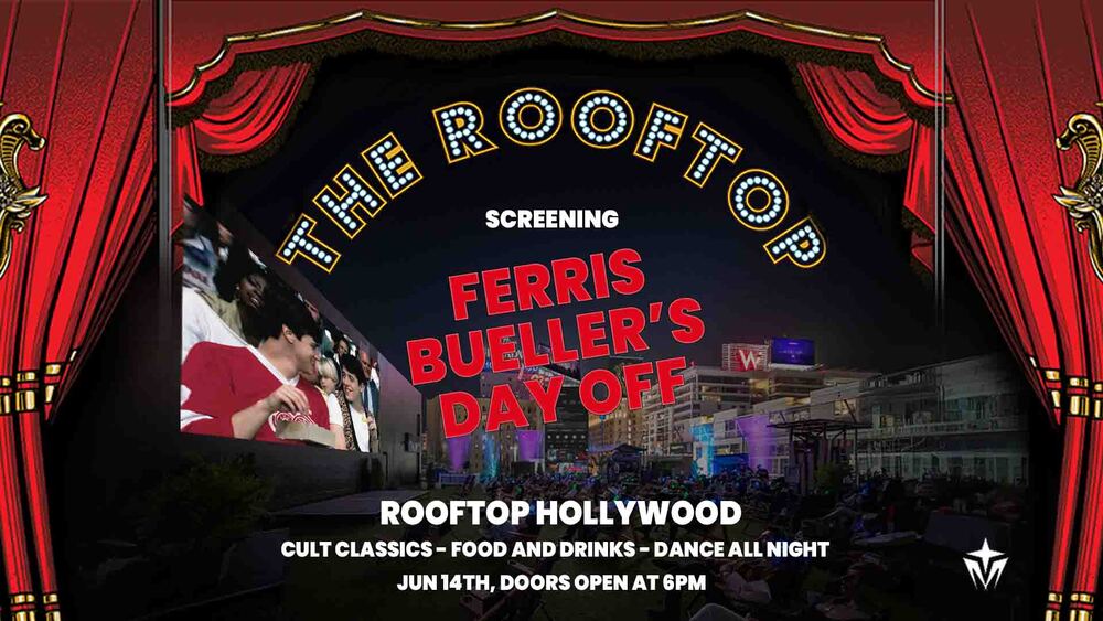 Enjoy your favorite cult classic with our rooftop screening event that promises an enchanting evening under the twinkling night sky. Join us at the Hollywood Rooftop for an unforgettable experience that blends music, romance, and pure cinematic magic. Doors open at 6pm for breathtaking views of the city, with the film starting promptly at 7:30pm. Make memories that will last a lifetime with Happy Hour specials from 6-7pm, including a buy one, get one free offer on beer and wine. Whether you're a die-hard fan or looking for a unique night out, this event is not to be missed!