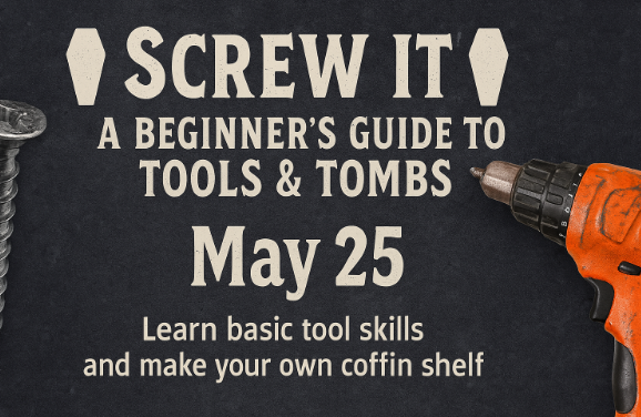 Ever wanted to wield a power tool with confidence but didn’t know where to start? Want to build creepy-cute haunted home décor and gain valuable skills? This beginner-friendly workshop is your chance to break through the intimidation barrier and walk away with both knowledge and a handcrafted coffin shelf!