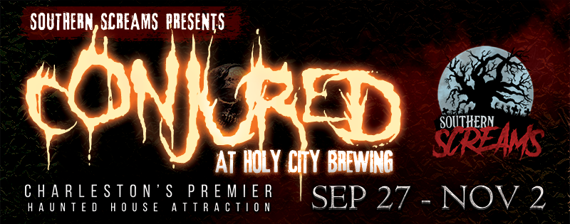 Experience Charleston's premier haunted house attraction - CONJURED at Holy City Brewing - presented by Southern Screams. Open for 27 terrifying nights beginning September 27, including two special LIGHTS OUT nights November 1-2!