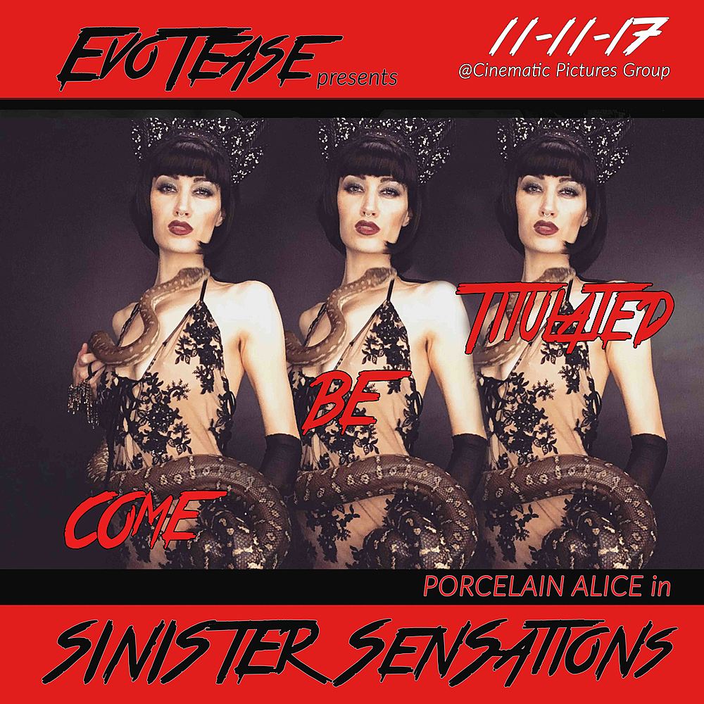 "Sinister Sensations" will be the fifth show in EvoTease Charity Festival but by far the most innovative, providing attendees with a hybrid Poledance/Performance Art Show, Poledance in one room and Performance Art in the other. Lead by Australian visitor, Porcelain Alice, and an array of talented poledance, performance art and burlesque beauties where VIP and General Admission attendees have the ability to move between the two rooms at their own will (as long as it doesn't disturb a performance). We'll also be having roaming performers and state-of-the-art side entertainment which will embrace the future setting by bringing in the first ever 360 Photo Booth and installing Virtual Reality Entertainment in our Lobby Space. The question now becomes: how will you create your night?