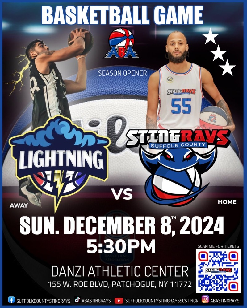 As we embark on this exciting journey, the Sunrise sports & Entertainment has purchased a professional basketball team creating an unparalleled fan base experience for Suffolk County. Our goal is to create an electrifying game day atmosphere to engaging social media content. We want our fans to feel a part of something special. The Suffolk County STINGRAYS are more than a basketball team - it’s a symbol of hope, unity, and the relentless pursuit of greatness; with a dedicated owner, a talented roster, and an unwavering commitment to the community, we are ready to make our mark in the professional American Basketball Association. So, get ready, because the Suffolk County STINGRAYS is here to redefine what it means to be a champion!